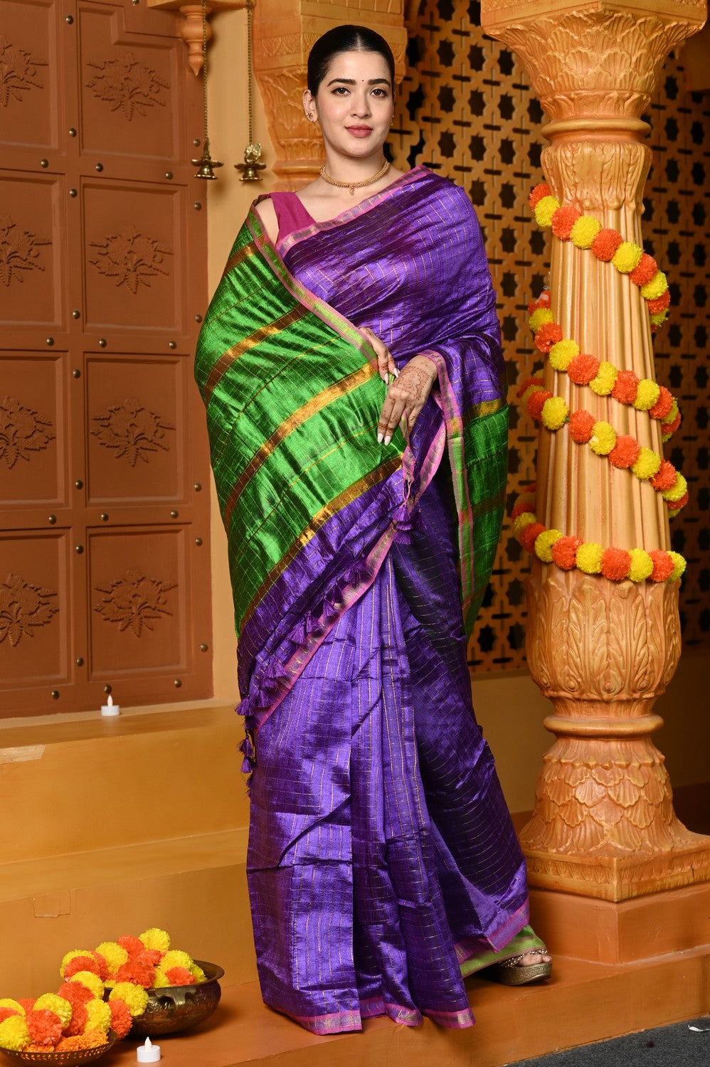 Experience the elegance of tradition with this Handloom Pure Tussar Silk Saree in a serene Lilac Green. Designed by VMI, this saree showcases the perfect harmony of craftsmanship and contemporary style. The soft tussar silk drapes gracefully, offering a rich texture and natural sheen that enhances the saree’s subtle sophistication.