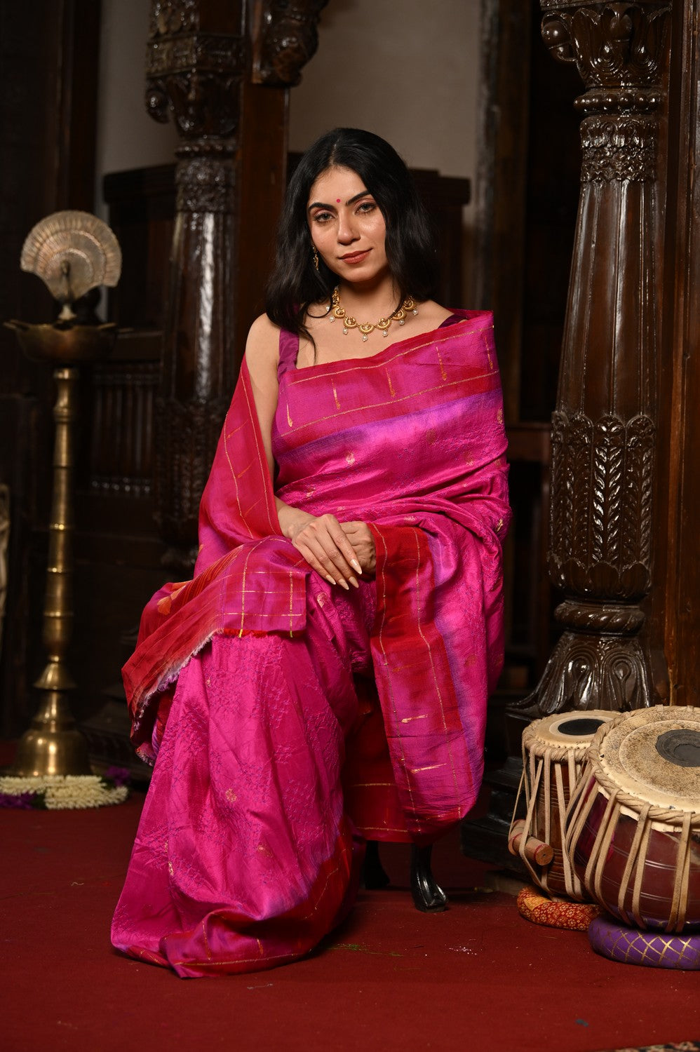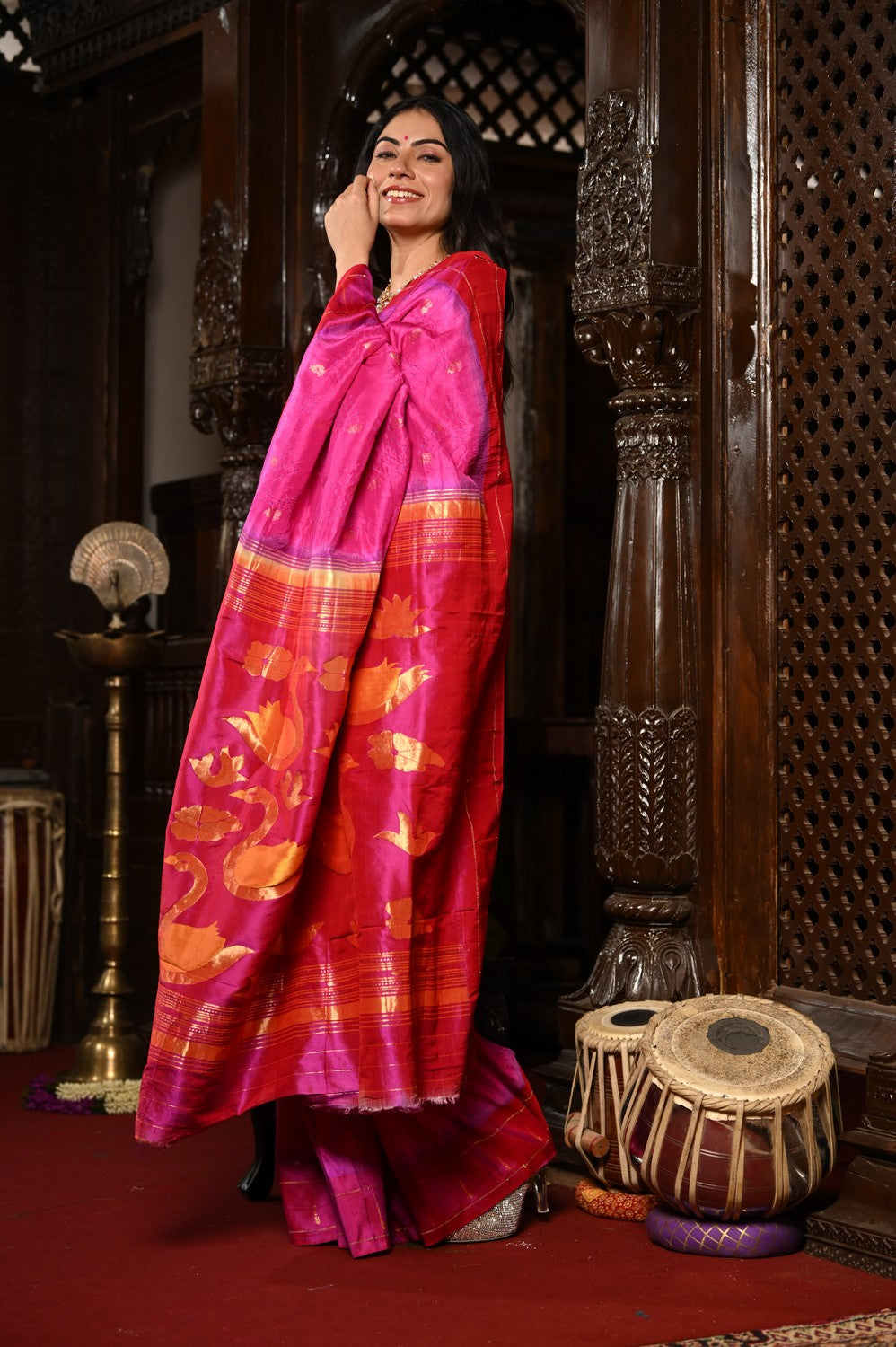 From the Mahalakshmi Collection, this Handloom Pure Silk Paithani is a treasure of tradition, woven in a rich Pnk that radiates regality and timeless elegance. Crafted by skilled artisans, the saree reflects the heritage of Paithani weaving where each thread carries the essence of devotion and legacy.