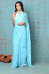 Intricate handloom patterns complemented by a shimmering sequin lining on Softest Mul Cotton Saree.