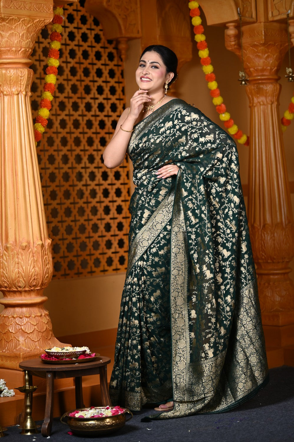 Durva Premium~ Viscose Hand-dyed Rangkaath Saree in Dark Green