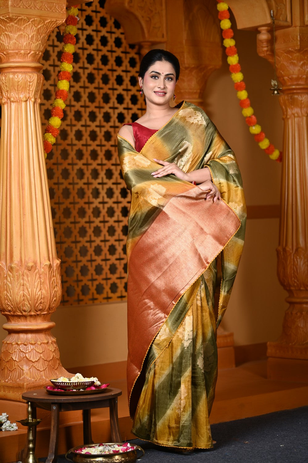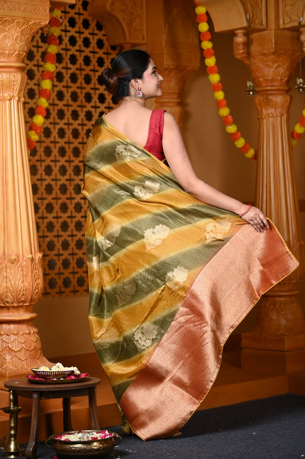 Durva Premium~ Viscose Hand-dyed Rangkaath Saree in Shades of Olive Yellow