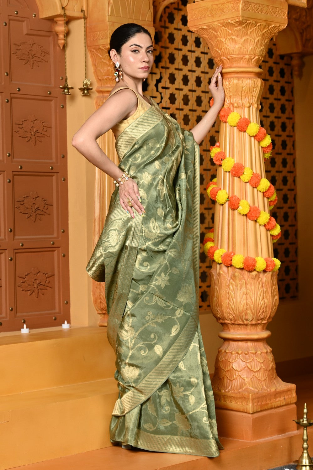Gaurangi ~ Viscose Hand-dyed Rangkaath Saree in Exclusive Sage Green
