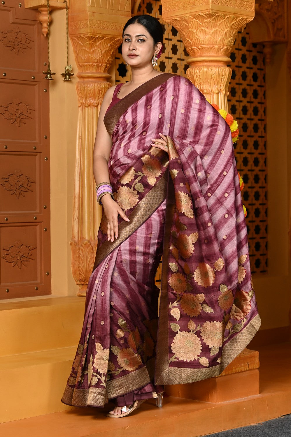 Gaurangi ~ Viscose Hand-dyed Rangkaath Saree in Maroon Pink
