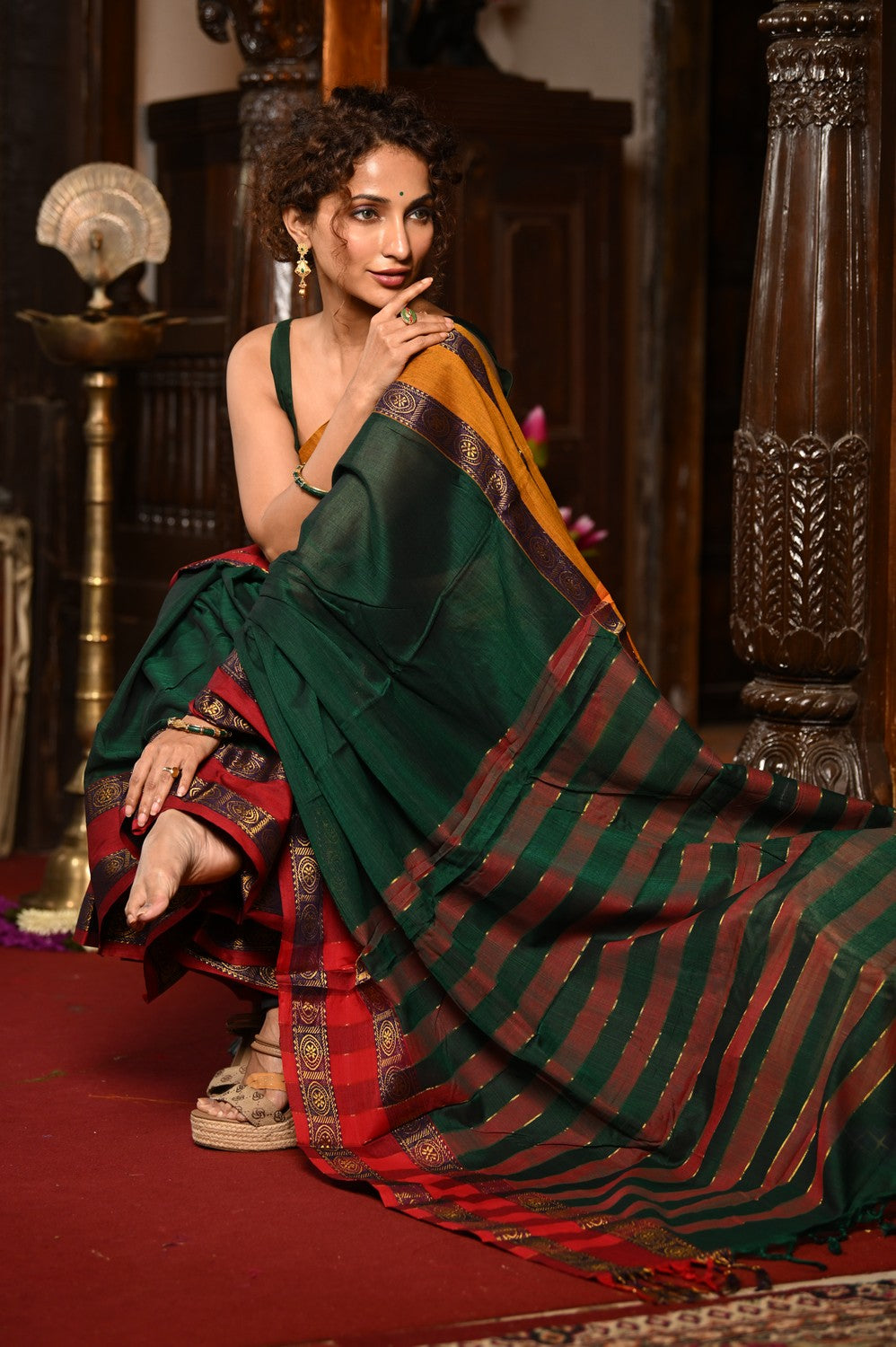 Mahalakshmi ~ Designer Cotton Saree in Green with Ganga Jamuna Border