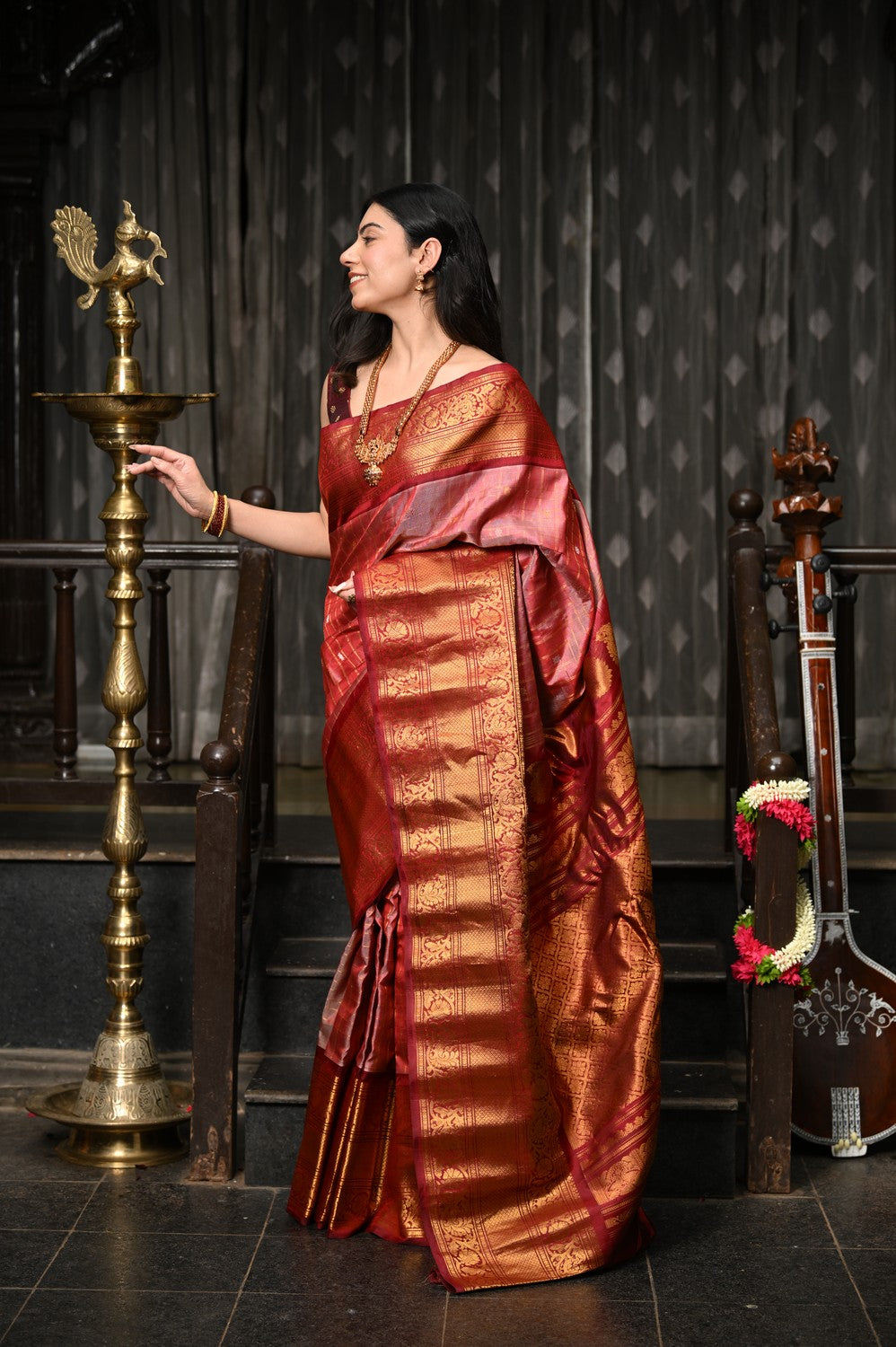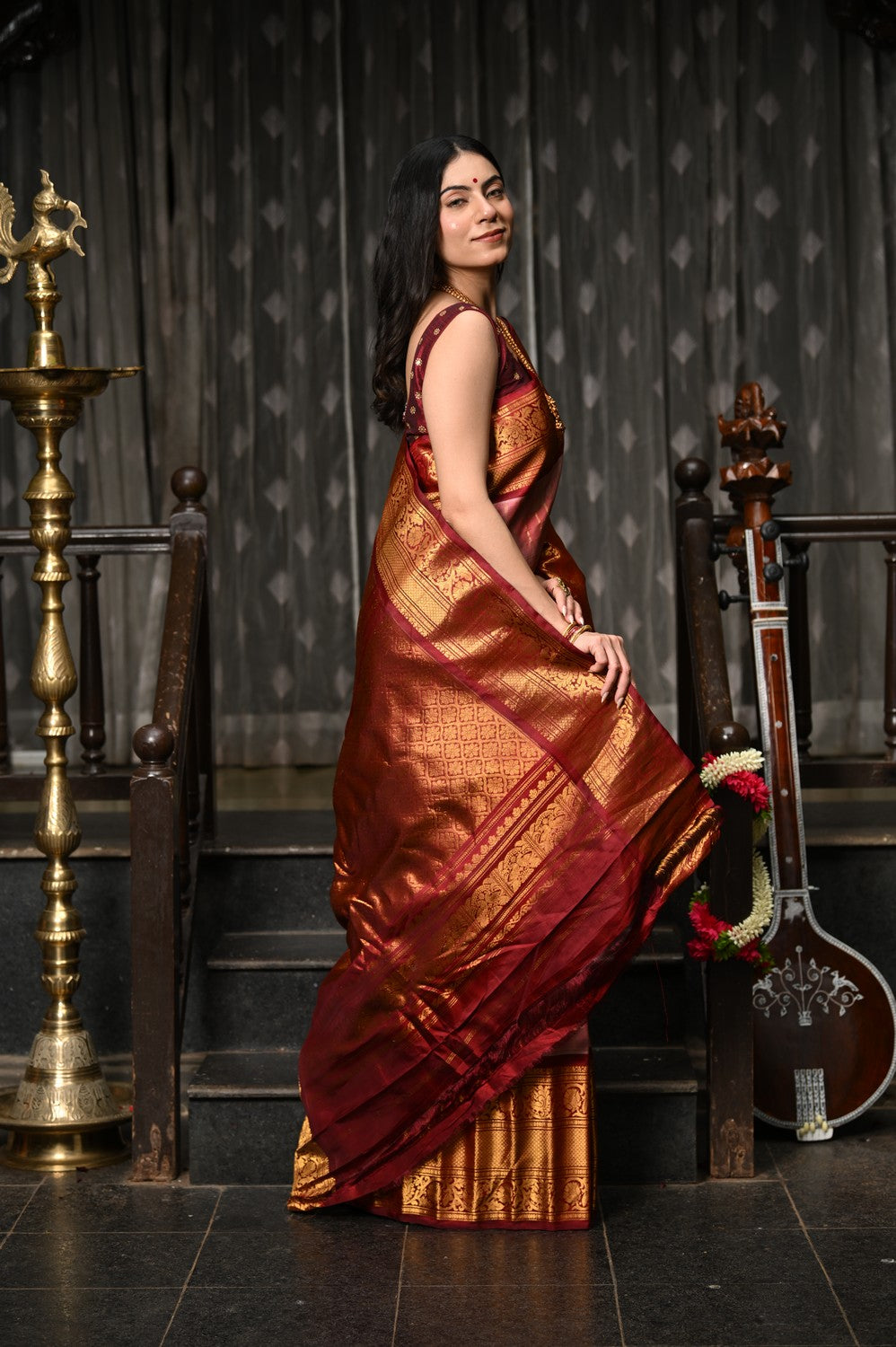 • Work: Handwoven zari with rich brocade body