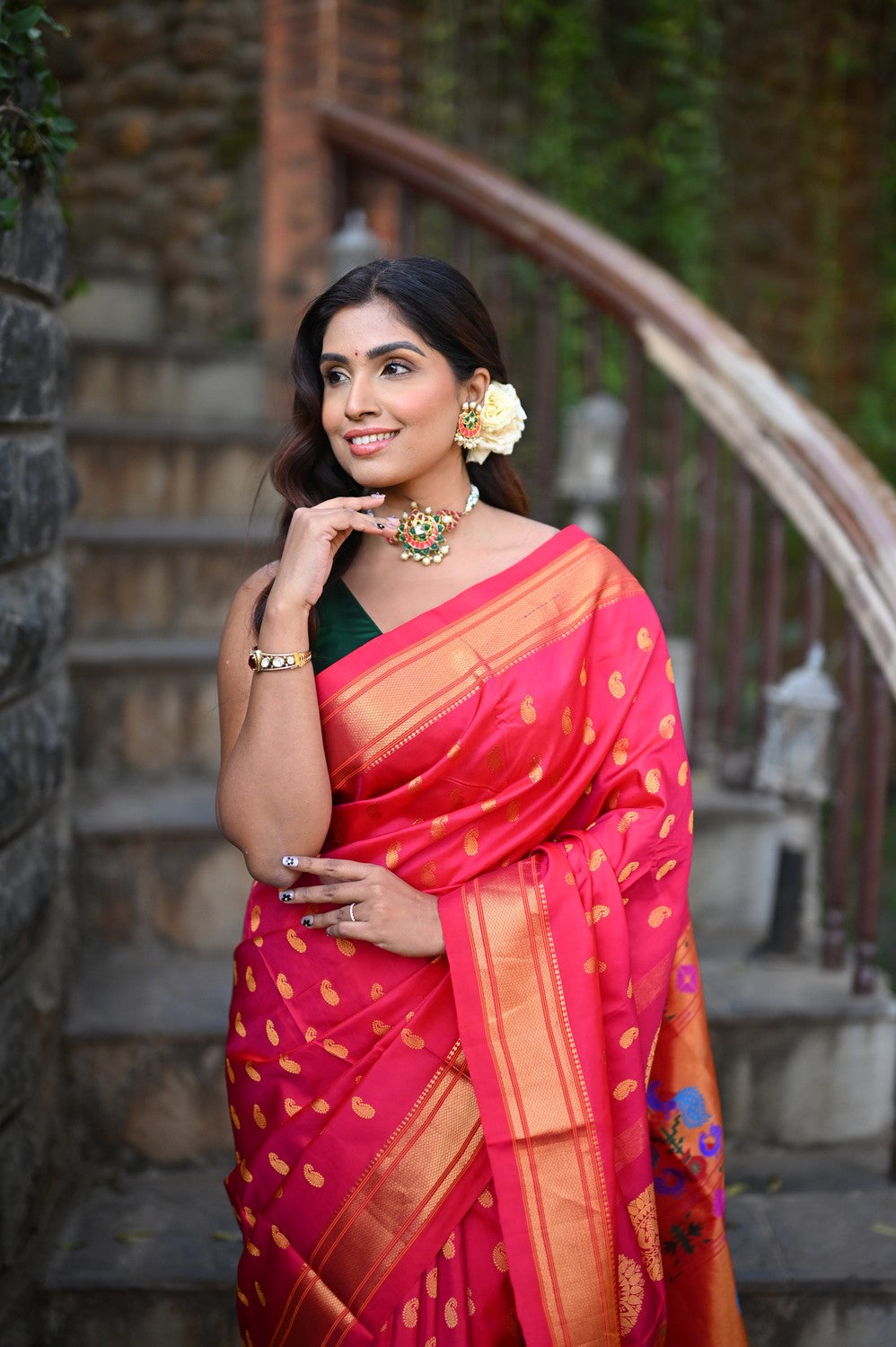 Rang Mahal ~ Handloom Pure Silk Paithani Maharani Paithani in Rani Pink