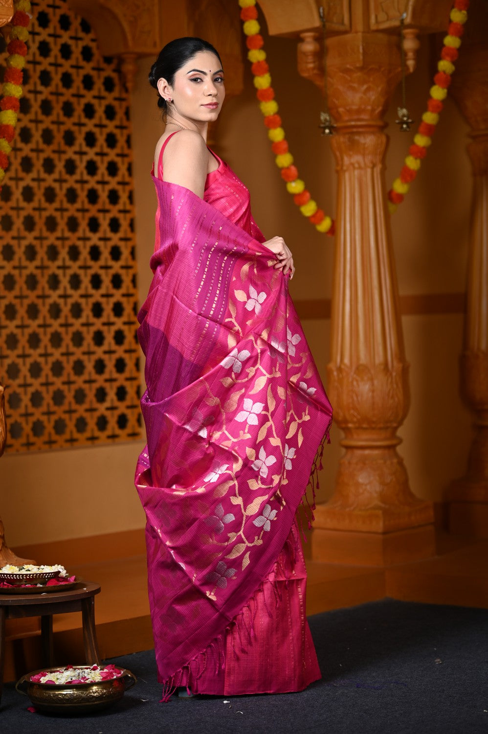 Durva Premium ~ Handloom Pure Soft Silk Saree in Flamingo Pink (Limited Edition)