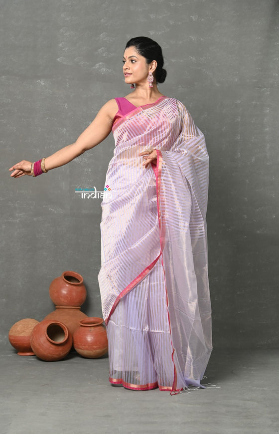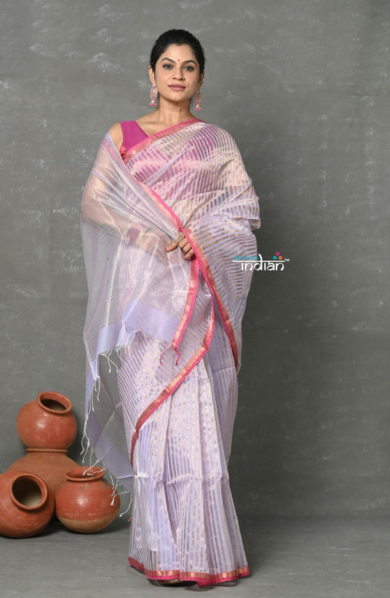 Handloom Pure Cotton Silk Saree With Sleek Golden Border.