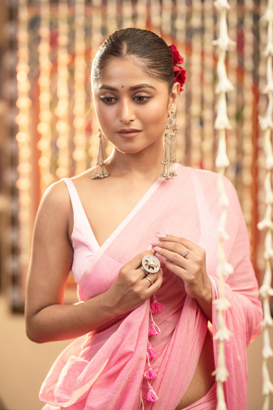 - The blouse worn by the model in the image is from our wardrobe. There is no running blouse for this saree.