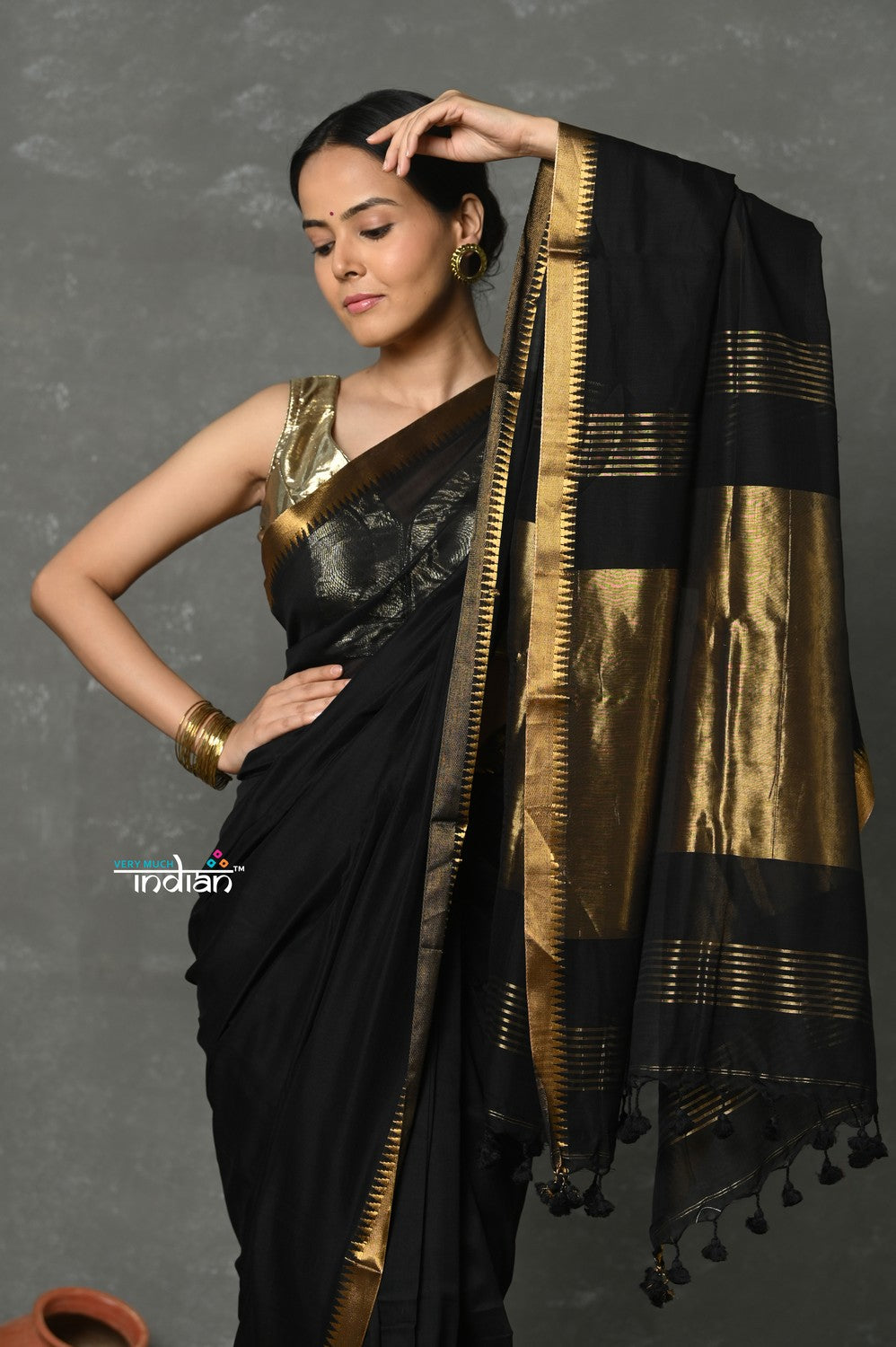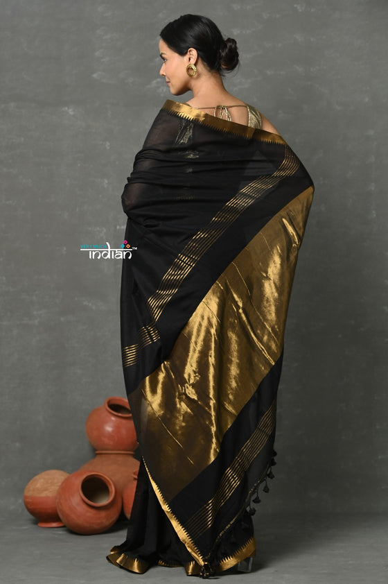 #WeaversofVMI ~ The inspiration of this saree comes from our community of 2000+ weavers who put sophisticated efforts to align the finest of threads together & make this beautiful saree come alive. With this saree we are promoting Indian Long lost culture & Sustainable Weave.Design:Intricate handloom patterns complemented by a shimmering sequin lining on Softest Mul Cotton Saree.Styling Ideas:Pair with silver, metallic and oxidised jewelleryPair with hand-block printed Ikkat blouses