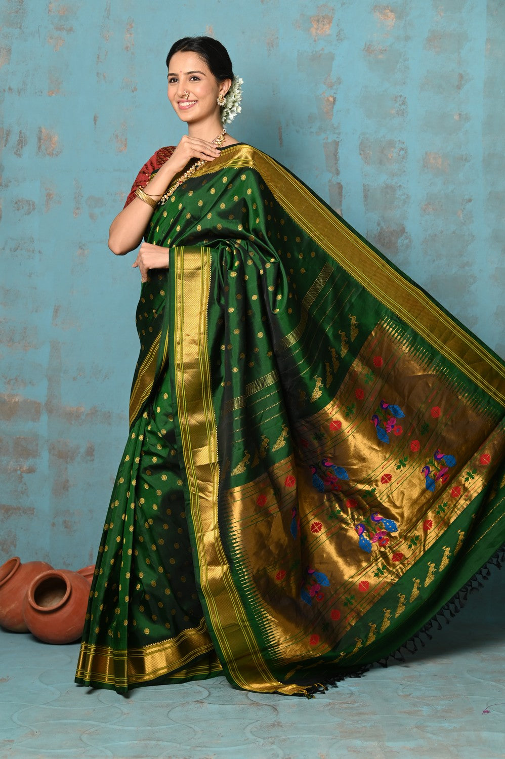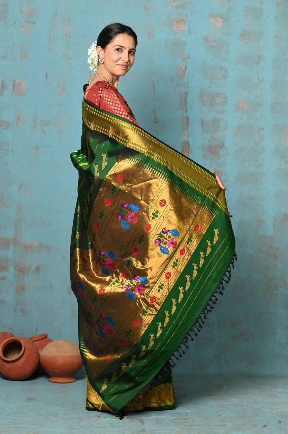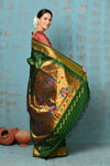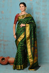 Regal! Royal! Relishing! This saree is thoughtfully designed with intricate work of zari which takes a laborious weaving of more than a month's time. The beauty of this saree gets enhanced by the grand parrot pallu reviving the luxurious weave enjoyed by the Royals of India.With Weaving of more than 200 hours, this Grand Maharani pallu has adequate reflection of royal design and art. This is a VMI prestige design and one of the latest accomplishments of our weavers.Pair this saree with your heavy jhumkas and gajra on the bun to bring that royal statement of ethnic and style.
