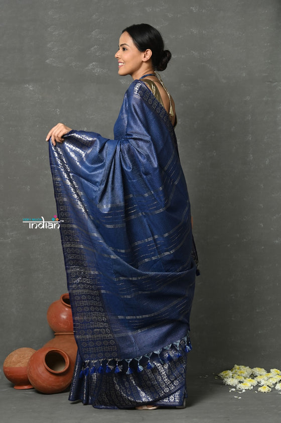 .#weaversofvmiOur community of 2500+ weavers helps us to bring the traditional art of Cotton Viscose Woven Designs sarees to your doorstep. Our senior weavers produce intense intricate work on each piece of this saree, ensuring every saree is a masterpiece. Their expertise and passion for weaving create sarees that are not only beautiful but also a tribute to our rich cultural heritage.Design:- Cotton Viscose Hand Block Saree With Brocade How to wear ?Pair this saree with Designer BlousePair them with statement jewelry for a festive look or keep it simple for a chic, everyday style.