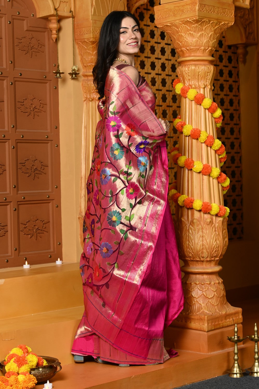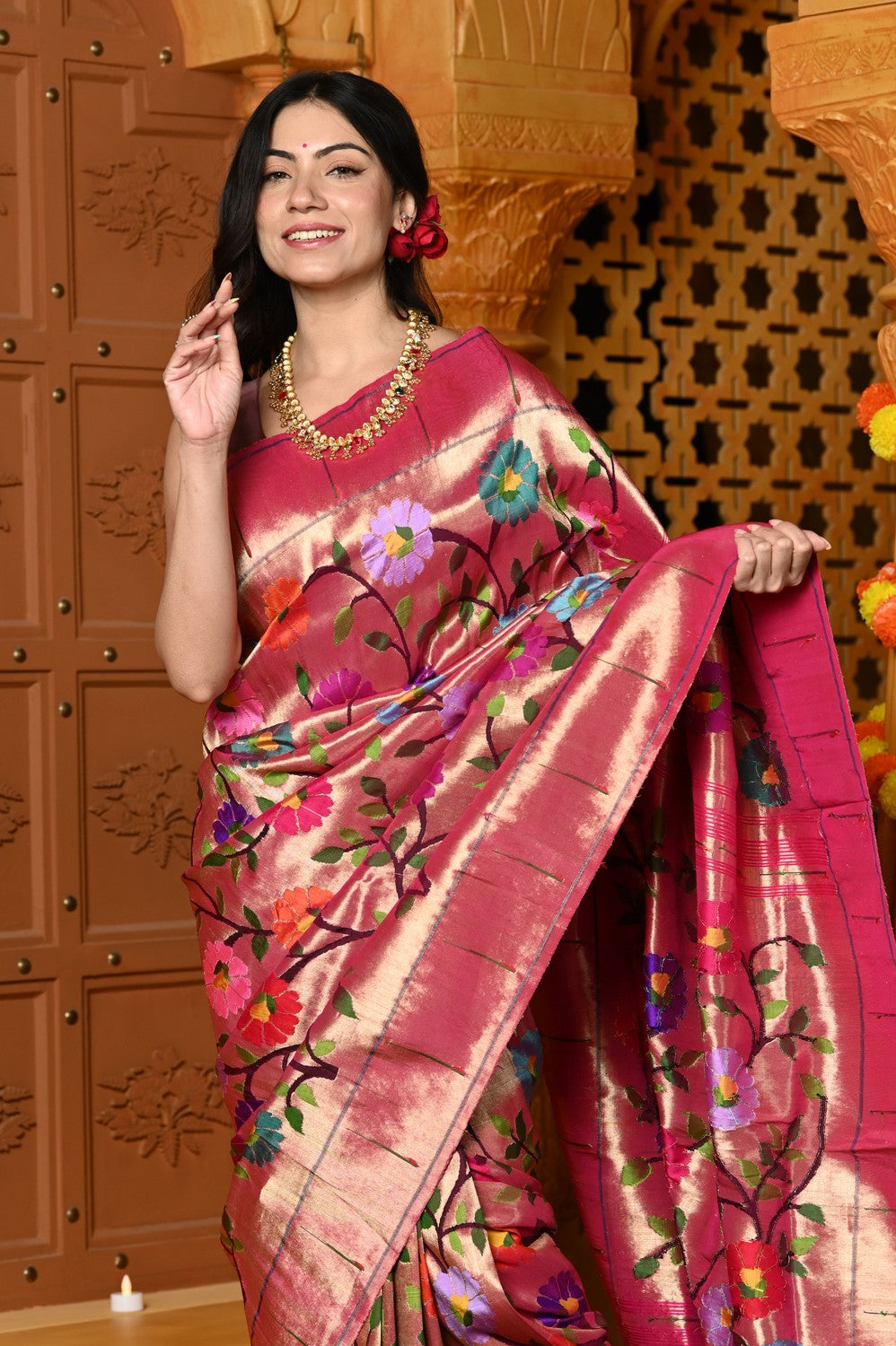 Work: All-over Floral Handwork with Traditional Paithani Weave