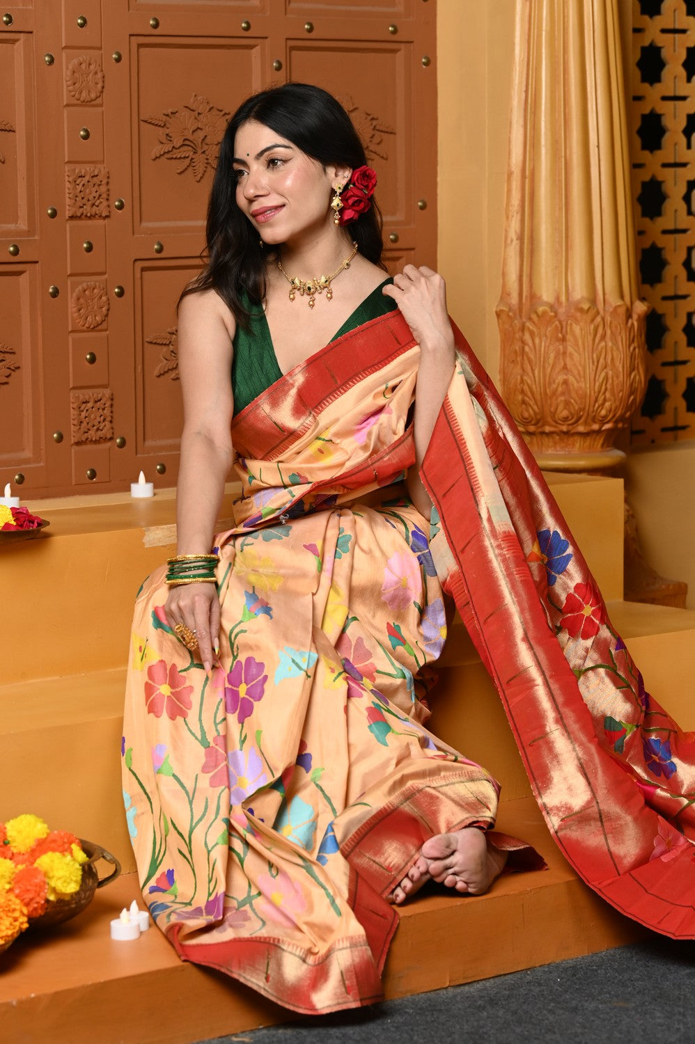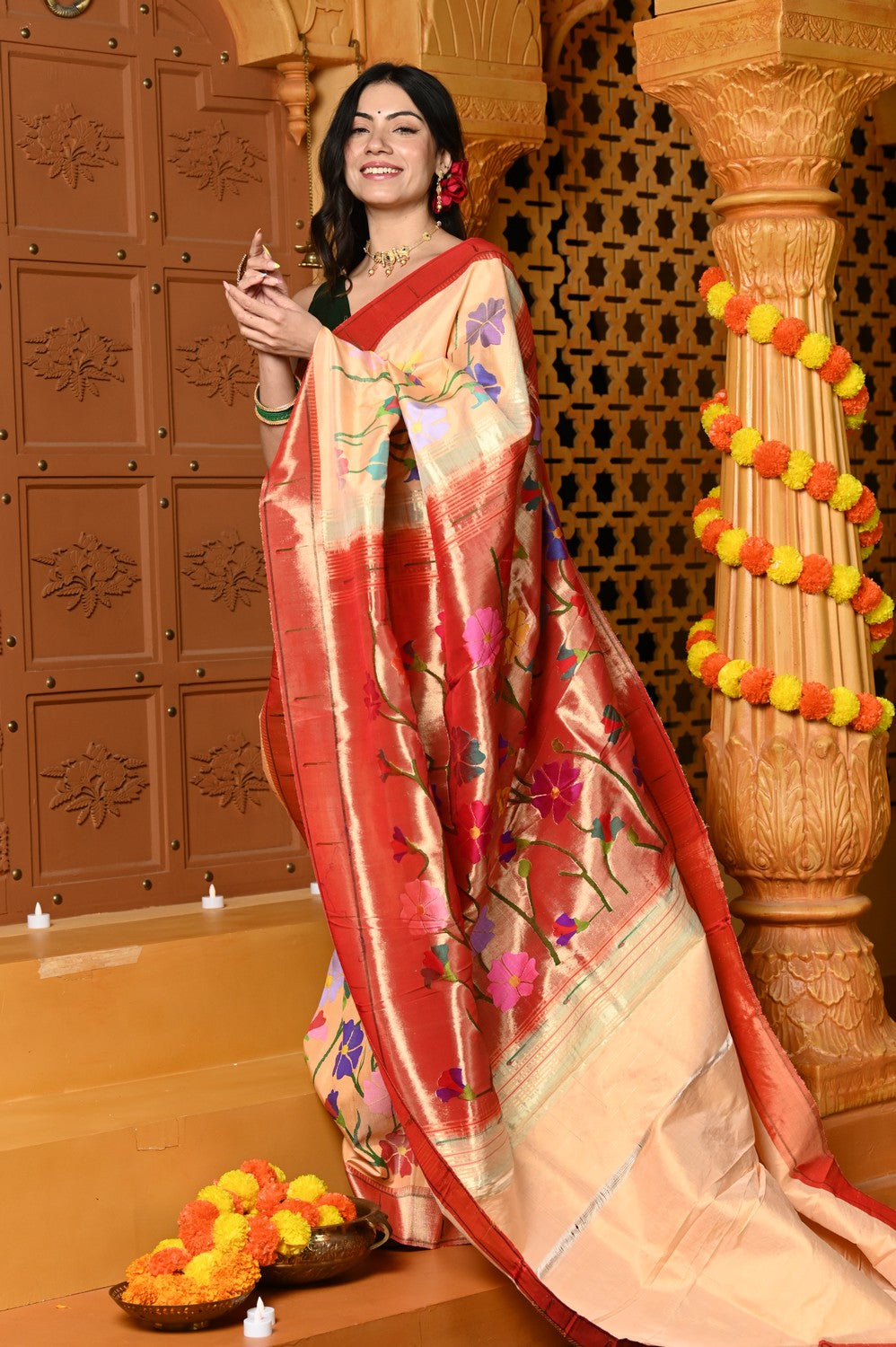 Work: All-over Floral Handwork with Traditional Paithani Weave